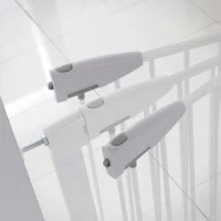 - Barrière avec rallonges : Barrière adaptée à des ouvertures de 73 à 79 cm, peut être étendue jusqu’à 114 cm grâce aux rallonges (vendues séparément). S’installe en 5 minutes grâce aux outils fournis